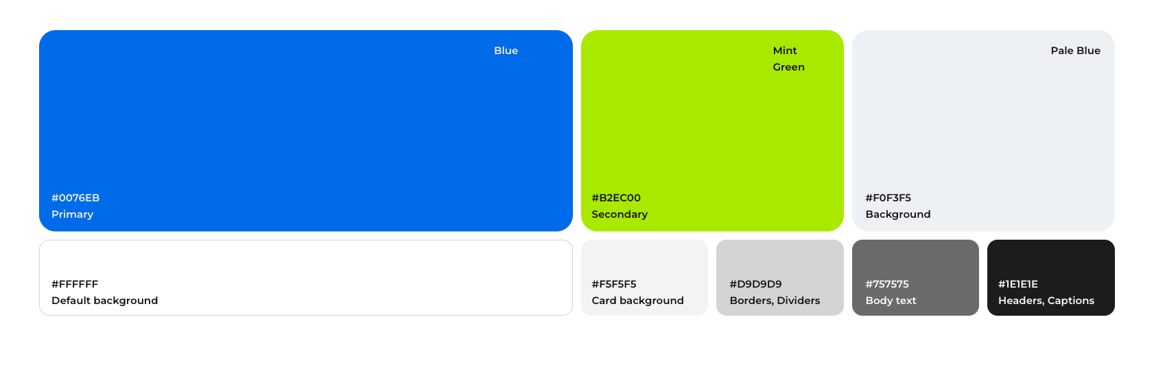 The palette for the app uses Blue and Lime Green to bridge the gap between technical reliability and the grocery industry.